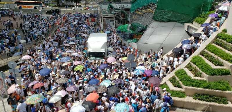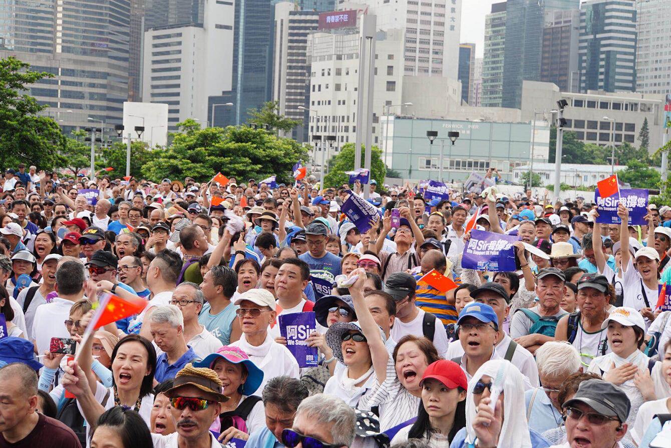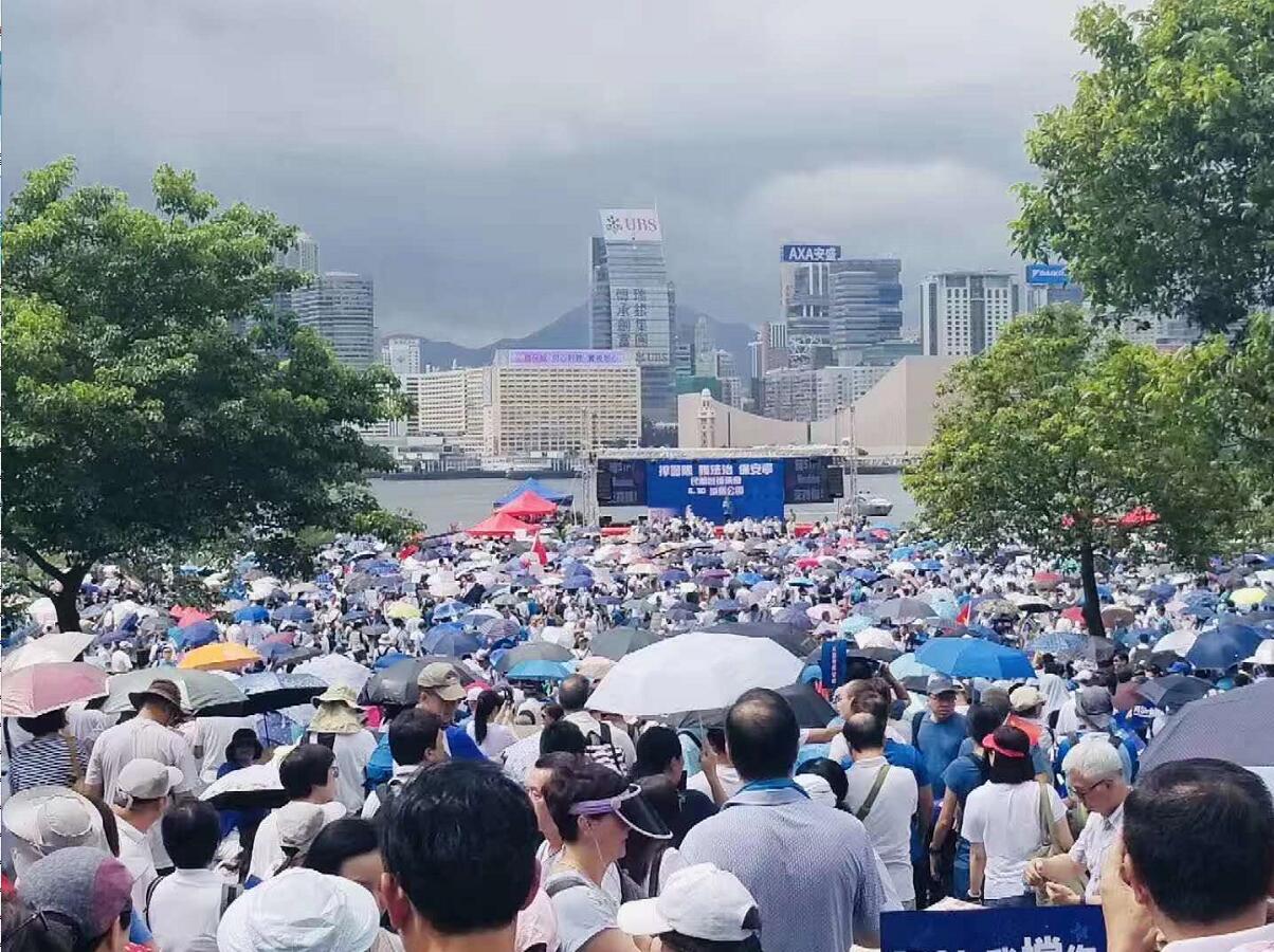 【香港商报网讯】為向維護法紀的香港警察打氣,由立法會議員何君堯牽頭、香港各界市民參與的「6.30撐警察,保法治,護安寧」和平集會於今日下午3時於添馬公園舉行,現場人山人海,數以萬計會場擠滿會場,大會表示仍然有大批市民陸續加入。