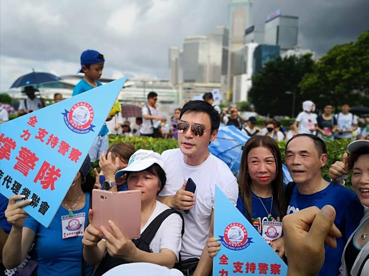 不少藝人都出席今日撐警集會,譚詠麟(阿倫)和鍾鎮濤(阿B )在台上大呼,支持警察執法,獲得出席集會市民大聲和應。
