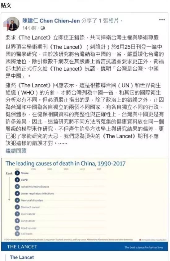 针对台当局的抗议,《柳叶刀》的回复有理有据。
