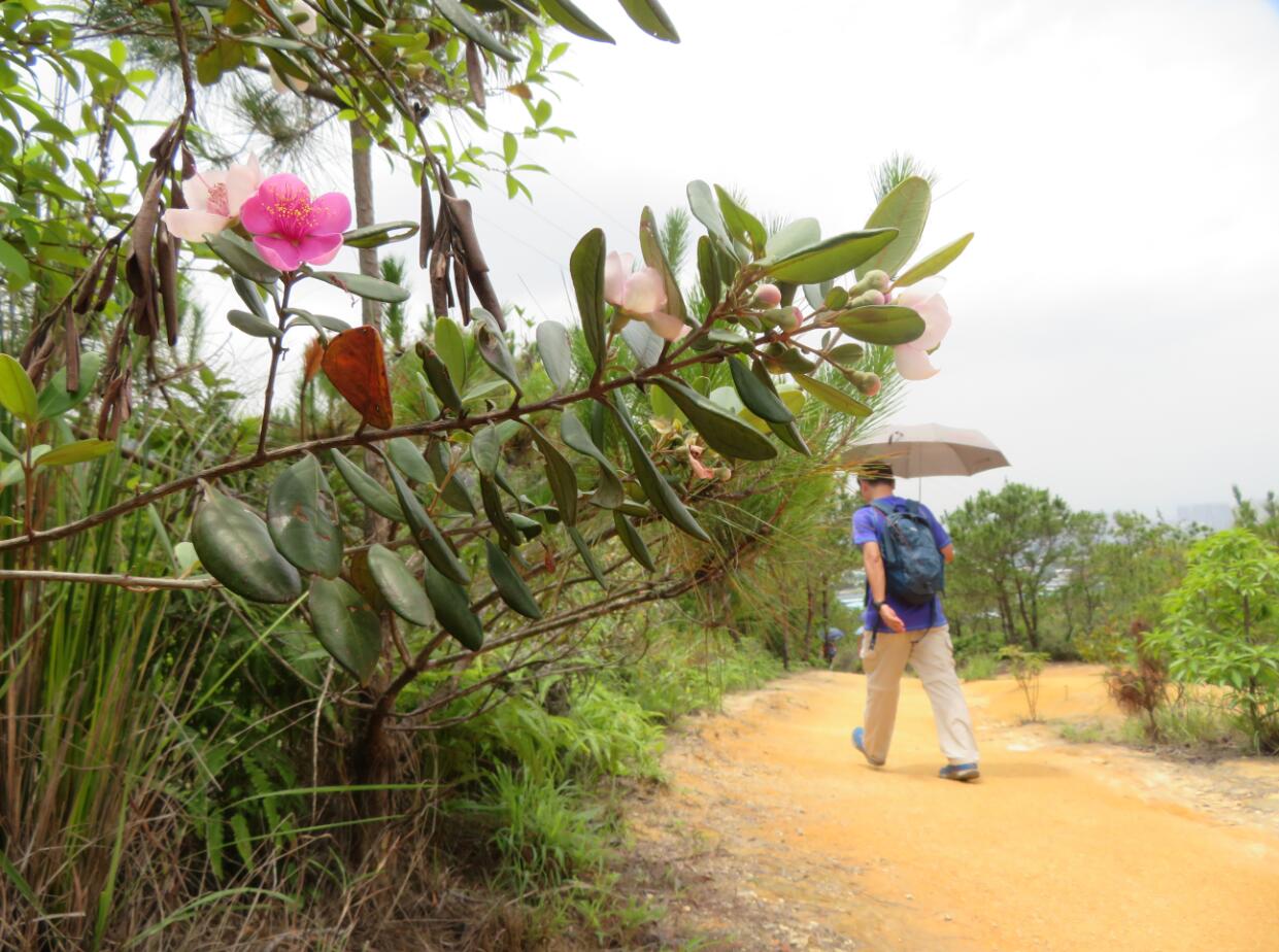 別過適廬不久就進入麥理浩徑10段,在徑上走半個鐘便到黃泥墩水塘,這一段路大多是上坡的黃泥路或石級,會令你有點氣喘,但風光綺麗,山稔花沿途盛開,蝴蝶花叢飛舞,景觀開揚,可遠眺元朗十八鄉及市中心。