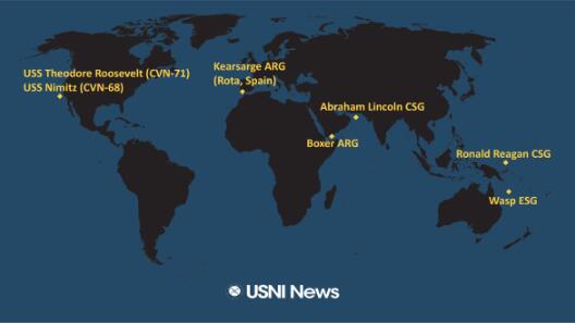 目前,美军在南海附近没有大型水面舰艇,可能有少量驱逐舰,最近的航母“里根号”在印尼以东的西太平洋。图源:美国海军研究协会