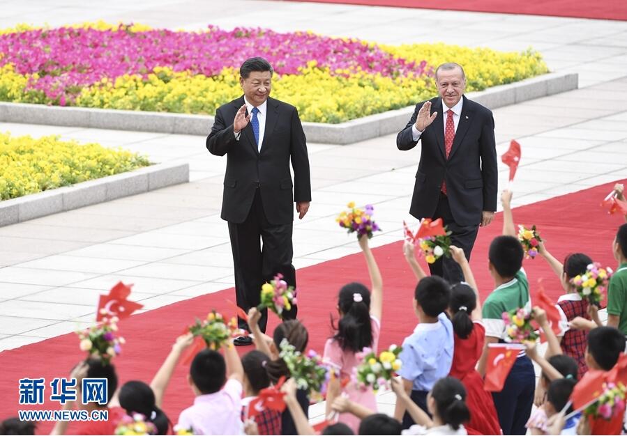 7月2日,国家主席习近平在北京人民大会堂同土耳其总统埃尔多安举行会谈。这是会谈前,习近平在人民大会堂东门外广场为埃尔多安举行欢迎仪式。 新华社