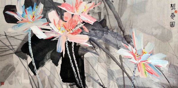 周雪清教授將水墨作品化成刺繡藝術,別樹一格。