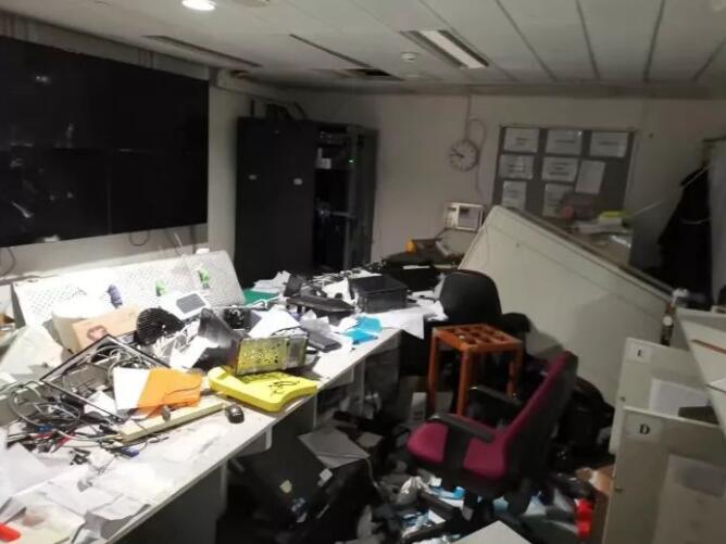 光纖設備被剪,導致大樓的通訊系統無法運作;