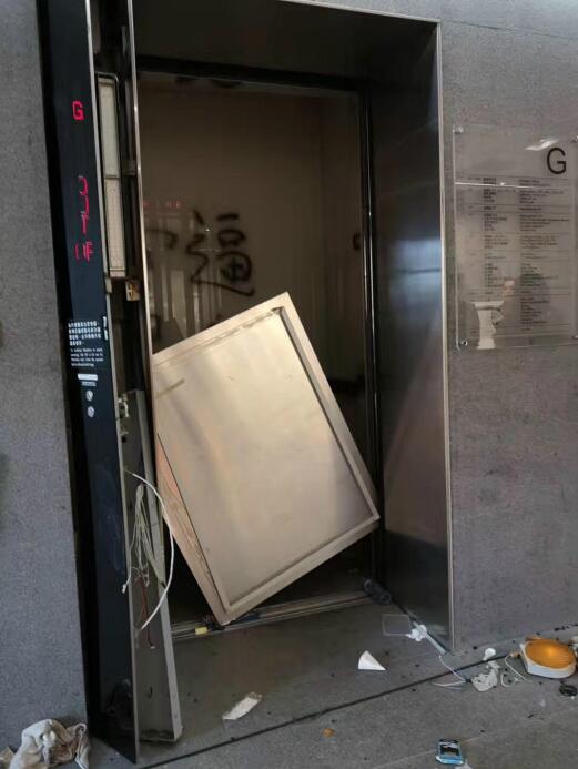 電梯遭到不同程度損壞,只剩下一部電梯没有被嚴重損毀,但工作人員已表示不能安全使用;
