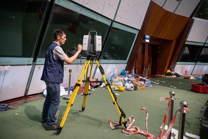 負責調查工作的警方有組織罪案及三合會調查科(俗稱O記)約30名探員昨日在被示威者大肆破坏后的立法会大樓內外蒐證,探員利用指模鑑證丶DNA鑑證丶 三維激光掃描等方法进行全方位搜争,并檢走大批證物。