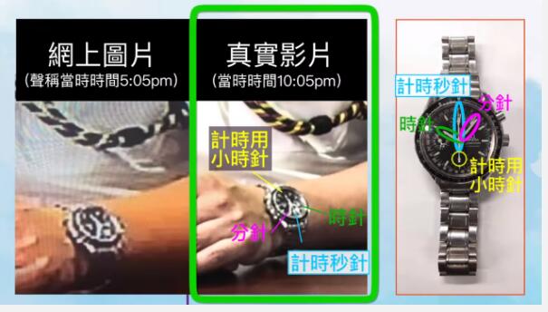 警方質疑個別手錶圖片曾被修改。影片截圖