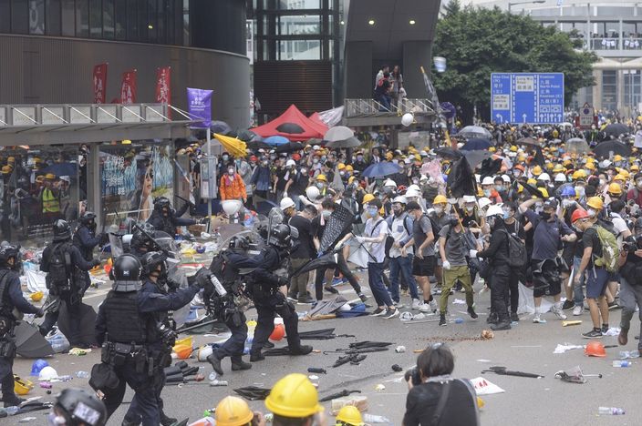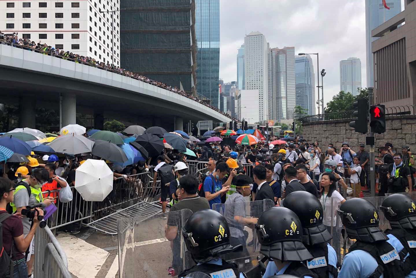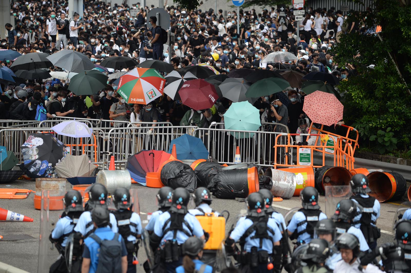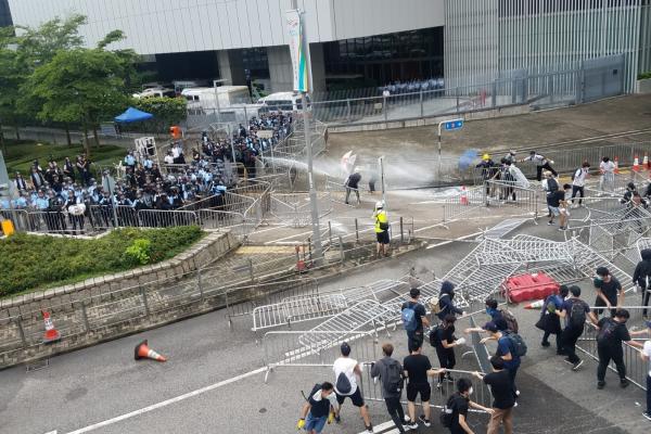 6月12日,香港金鐘一帶發生騷亂事件,大批示威者衝出龍和道及夏慤道,堵塞來往金鐘的主要幹道。为了驅散聚集的示威者,警方向人群施放催淚水劑和胡椒噴霧。