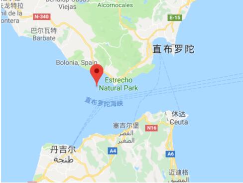 直布罗陀海峡位于西班牙最南部和非洲西北部之间,长58千米,最窄处在西班牙马罗基角和摩洛哥西雷斯角之间,宽仅14千米。
