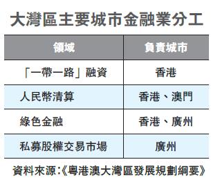 《綱要》致力為區內城市「拆牆鬆綁」,為香港金融業發展提供台階。港府也須憑藉既有優勢,在大灣區發揮好金融服務引領作用。