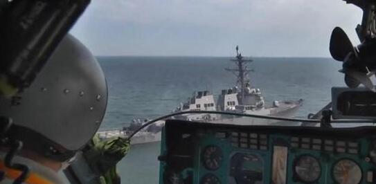美国海军驱逐舰正在黑海参加美国和乌克兰的“海上微风-2019”演习,头顶上突然飞来了一架俄罗斯反潜直升机。
