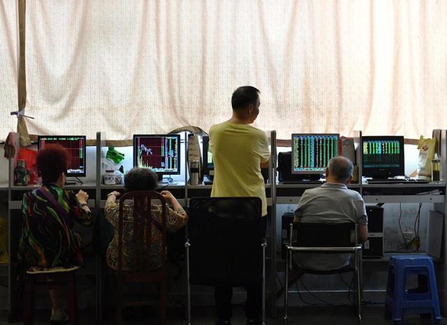 7月8日,股民在四川成都某证券营业部大厅内关注股市行情。