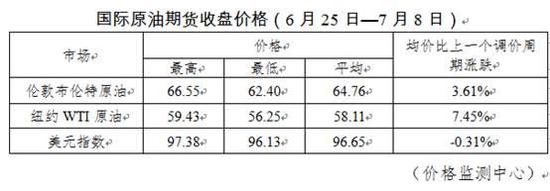 據國家發改委價格監測中心監測,本輪成品油調價周期內(6月25日—7月8日),國際油價先升後降,平均來看,倫敦布倫特、紐約WTI油價比上輪調價周期上漲5.53%。受此影響,國內汽油、柴油零售價格隨之上調。