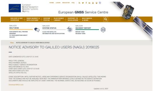 官方11日发布的服务降级公告图自欧洲全球导航卫星系统局