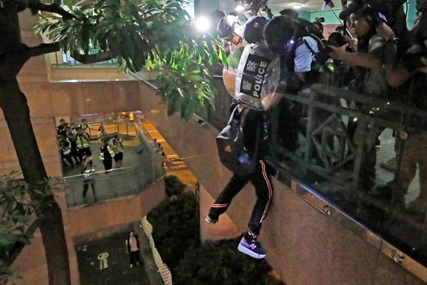 【香港商報网訊】記者馮仁樂報道:前晚「光復上水」遊行結束後,部分激進示威者有組織地衝擊警方,最終演變成暴亂,導致10多名警員受傷。警方強烈譴責暴力示威者有預謀及有組織的刻意襲擊行為,強調會對所有非法及暴力行為進行調查,追究到底。警察員佐級協會昨日連續兩次發出聲明,點名譴責反對派立法會議員尹兆堅,指他就有示威者懷疑跳橋一事,企圖捏造事實、誤導公眾;聲明並促請警務處處長及管理層必須確切保障執勤警務人員的人身安全及心理健康。