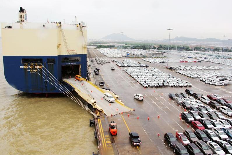 平行進口汽車從船上緩緩駛入南沙汽車碼頭--(南沙海關供圖)