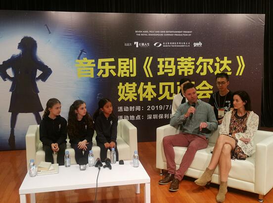 首演結束第二天,三位瑪蒂爾達的飾演者Kitty Harris、Sofia Poston、Morgan Santo以及駐團導演Natalie Gilhome、音樂總監Louis Zurnamer出席了深圳媒體發布會。