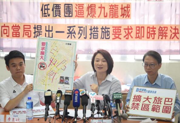 紅磡、土瓜灣等地區內地團迫爆問題持續多時未解決,民建聯認為,政府已實行的改善措施未符居民預期,認為政府有必要採取更果斷進取的措施,民建聯要求擴大士瓜灣及紅磡區旅巴禁區範圍,認為旅巴亂泊情況不能繼續下去,要求政府與運輸署,以及旅遊業界協調,採取行政措施,落實擴大土瓜灣及紅磡區車輛禁區範圍,限制旅巴進入部分狹窄或原本已十分繁忙的路段,減少車流,以改善違泊情況。
