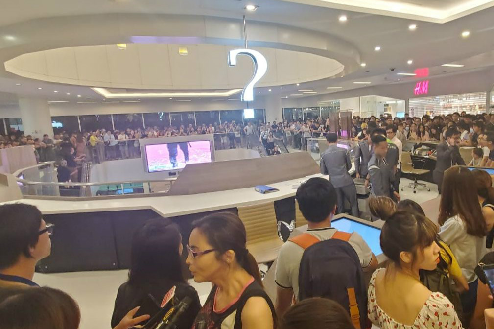 櫃枱原本有6名職員,先後有多名職員報稱不適,救護車接報到場將他們送走。其後示威者四處擾攘,有人到商場外行人路,有人在商場中庭坐地。