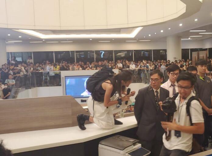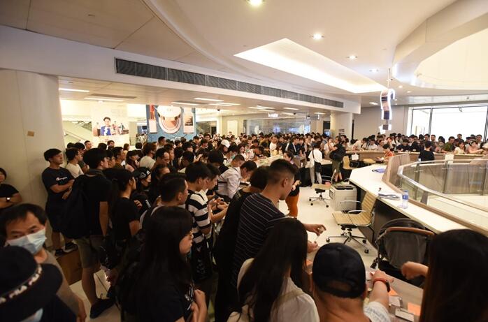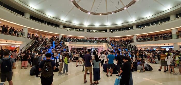 約半小時後,客戶服務中心及附近各樓層位置聚集逾千人,眾人不時發出噓聲,並高呼「交代」。