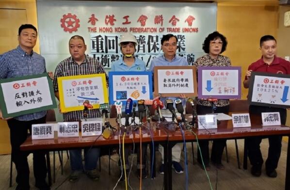 工聯會理事長黃國表示,建造業因為立法會被破壞,短期難復會,700多億工務工程項目未能批出,逼使工友「吊鹽水」度日;內地旅行團的數目由年初平均每月約7800團,減少至6月份5600多團,七月頭半個月更持續大跌;零售業亦因為旅客大跌、時局影響消費氣氛,部份店舖生意額只有平時兩、三成,依賴佣金的僱員收入大跌。