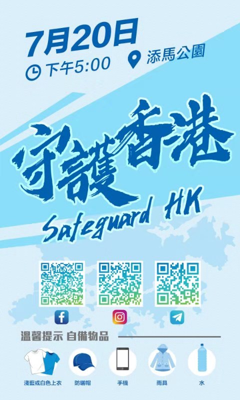 由社會各界人士發起的「守護香港」大會,將於後日於金鐘添馬公園舉行,主辦單位呼籲有意參與的市民當日穿上淺藍或白色上衣,並帶備手機、防曬帽、雨具及水。主辦單位今日下午將舉行記者會,介紹一系列的「守護香港」活動。