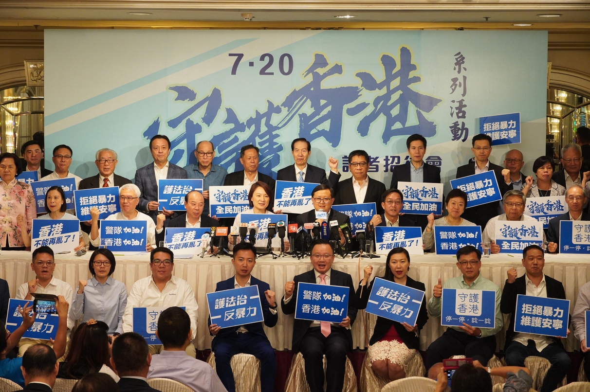 近百位各界人士宣布共同發起「守護香港」系列活動。首場活動是在本周六下午5時在金鐘添馬公園舉行以「守護香港」為主題集會。黃英豪表示,從6月開始,香港持續「高燒」已經一個多月,由修例風波引起的示威遊行無休無止,尤其是日益嚴重的暴力衝突,令香港社會撕裂,法治受衝擊,秩序被破壞。