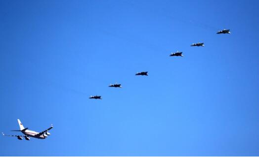 6架苏-57战机护航普京专机飞抵阿斯特拉罕国家飞行测试中心。图源:俄罗斯总统府