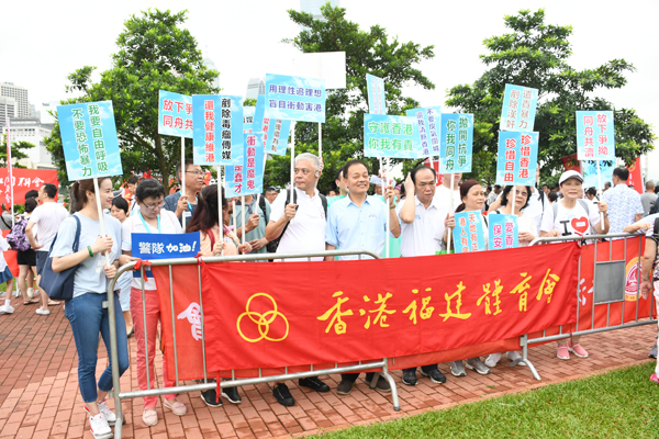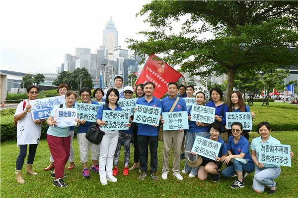 有參加集會市民表示,回歸後香港的自由民主已大大增加,示威者卻繼續無理取鬧,主要「服務市民」的香港警察被暴力對待,實在十分可悲;有市民說「香港是我家,不要暴徒破壞它」。
