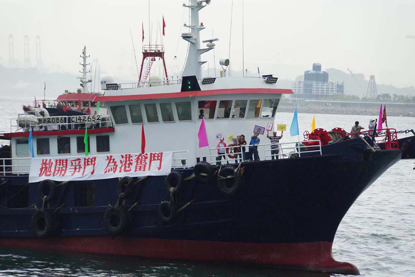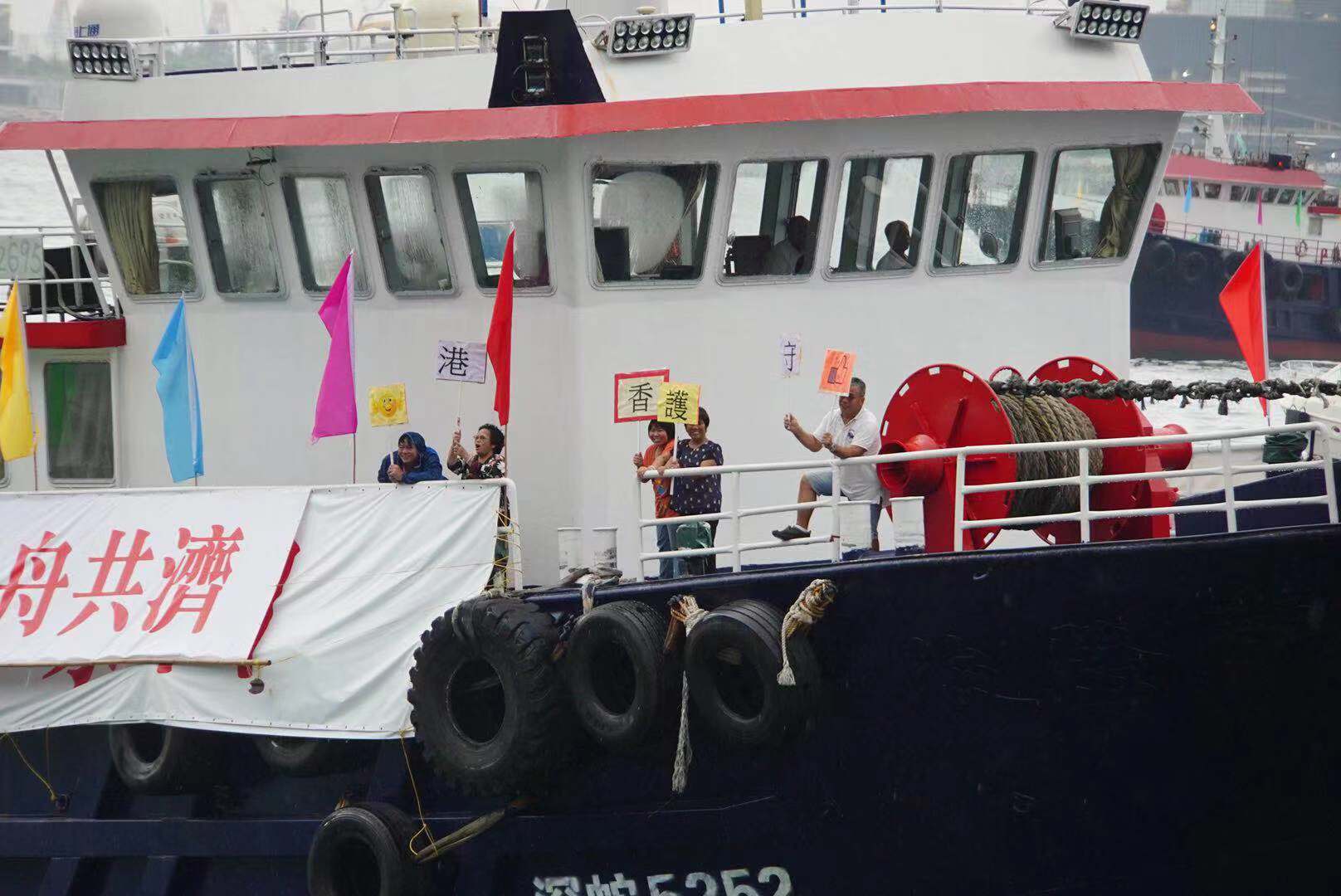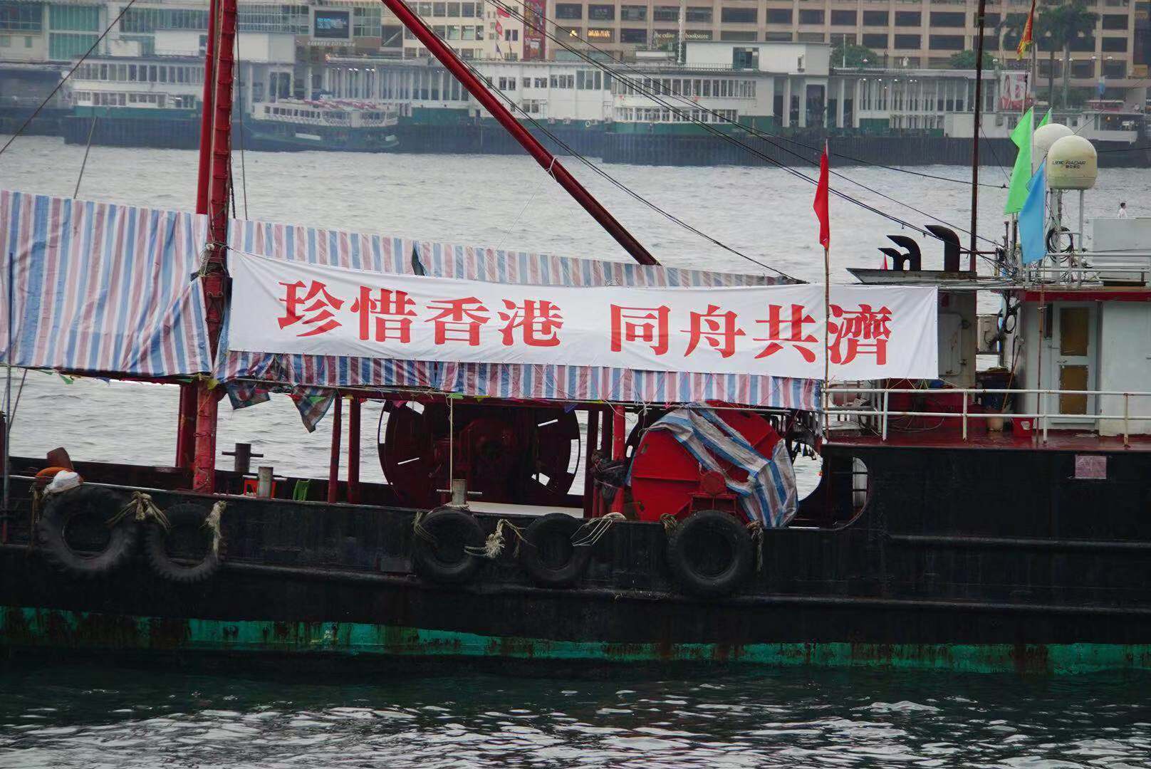 響應香港市民在添馬公園舉行的守護香港集會,香港漁民團體聯會昨日組織漁船隊伍在維多利亞港內進行巡遊,漁船上分別懸掛寫有「拋開爭鬥 為港奮鬥」、「守護香港 你我同行」、「珍惜香港 同舟共濟」、「停止干戈 同護香港」,以及「守護香港地 由你我做起」字眼的橫額,以表達香港市民期望香港社會盡快回復安寧、重回正軌的心願,以及嚴正地對暴力衝擊及暴徒說不。