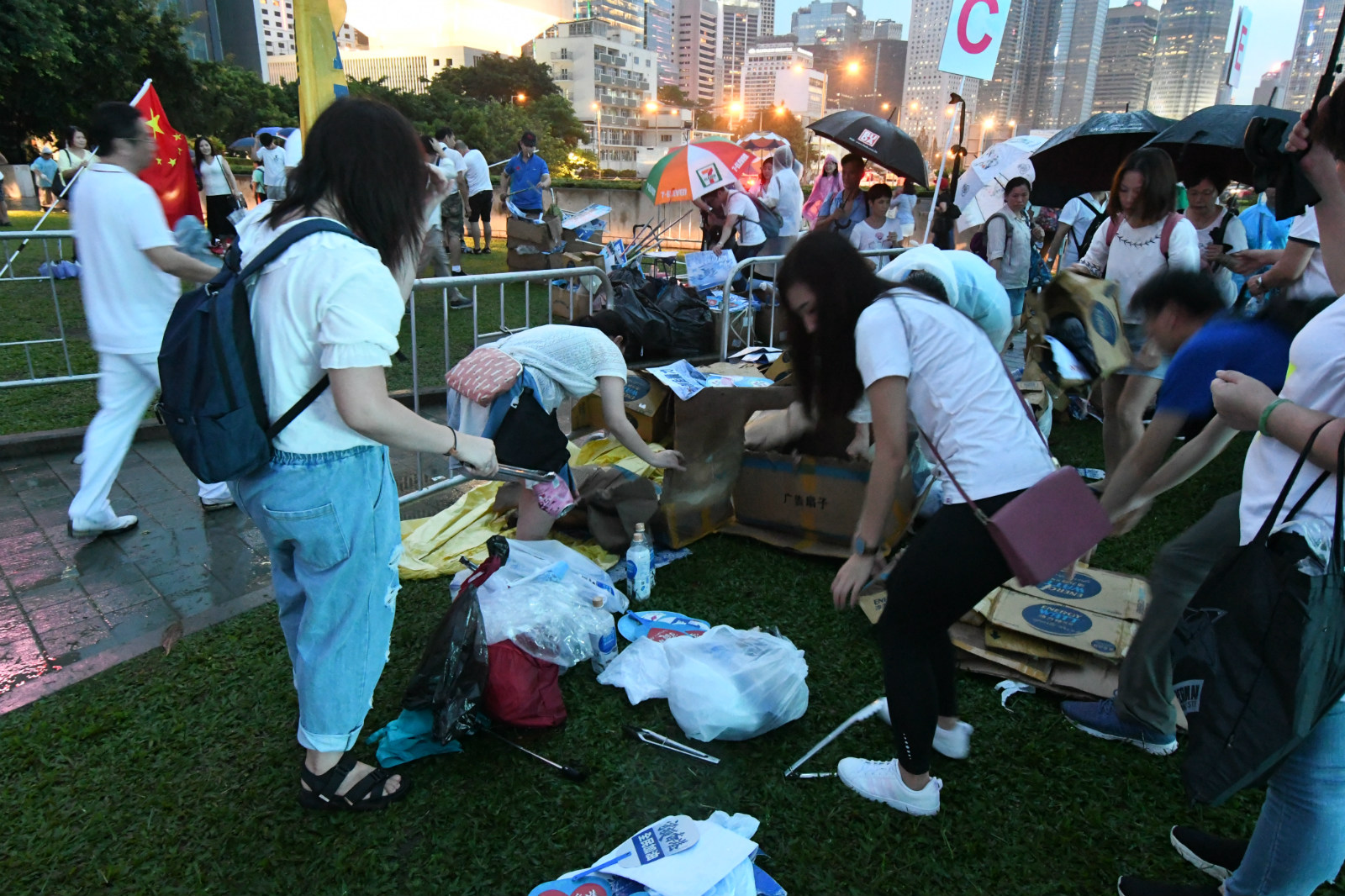 参与「守护香港」集会游行的市民在离场时主动将现场垃圾杂物清理干净。记者冯瀚文 摄