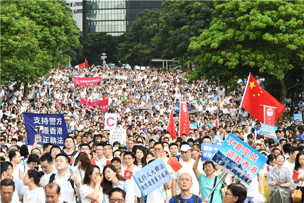 反對派不斷借修訂《逃犯條例》為藉口,近期不斷發動示威,甚至演變成於各區發生的暴力衝擊。由社會各界別、各階層,人大代表、政協委員、立法會議員、地區團體等各界人士組成的守護香港大聯盟,昨日在金鐘添馬公園舉行「守護香港」大會,表明反對暴力、守護家園的立場。