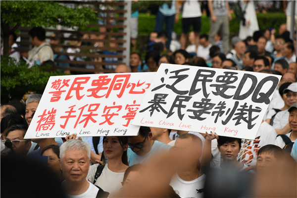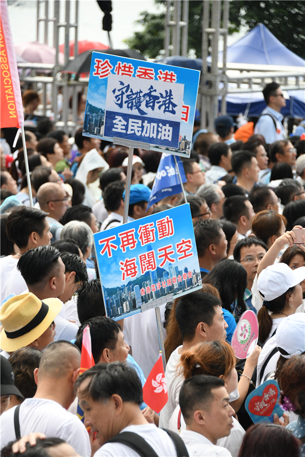 大批市民企出譴責暴力,籲珍惜香港。