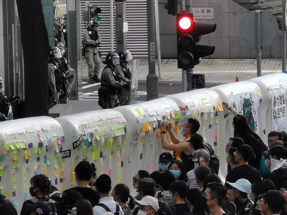 下午5时许,大批示威分子進入軒尼詩道、金鐘道往中環方向前進,並沒有依警方批准路綫進入莊士敦道。有示威者走出夏慤道,佔據夏慤道東西行線。有最少數百人在灣仔警察總部外聚集,示威人士在水馬上張貼示威便利貼,並高叫口號,有人指罵警察。而在大型水馬後方有多名防暴警察戒備,並加設水馬防範示威者有進一步衝擊行動。