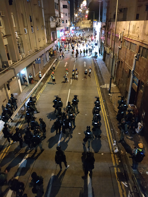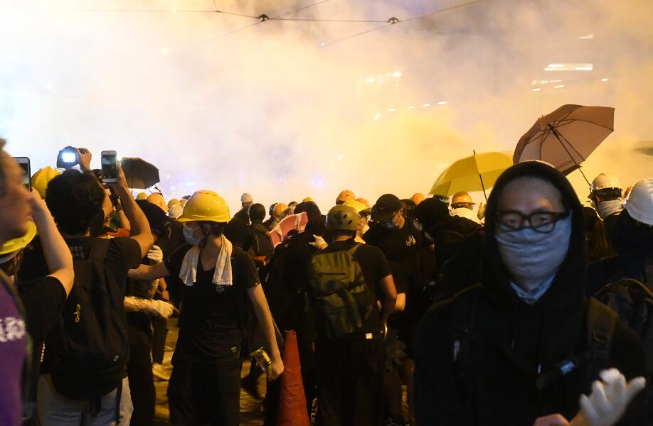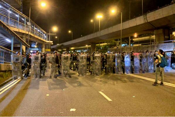 晚上11点左右,警方舉起橙旗要求示威者速離,并發射多枚橡膠子彈,示威者一度後退,但繼續與警方對峙。
