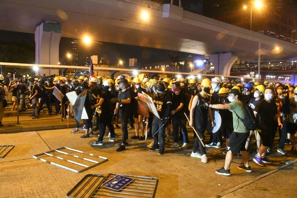 大批示威者手持武器與警方對峙。記者 馮瀚文攝
