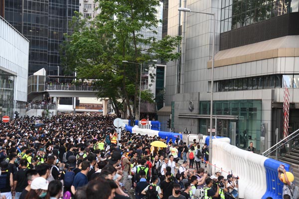 追源溯始,警民衝突始於民陣昨午發起的反修例遊行,惟隊頭抵達終點灣仔盧押道後,民陣隨後呼籲示威者自行解散,大批示威者並無聽從警方呼籲離開。另一方面,警方原本在軒尼詩道與盧押道交界布下防線,但警員於約下午4時半,突然往警察總部方向撤退,示威者隨即佔據軒尼詩道,部分示威者聚集在灣仔警察總部外,不少人繼續向金鐘及中環進發,示威者其後抵達金鐘,並佔據夏愨道東西行線,然後繼續向中環方向前進,部分示威者在畢打街及干諾道中交界停留,搬出雪糕筒封鎖干諾道中的西行線,影響現場交通,最後部分示威者繼續向西環方向前進,一度包圍中聯辦,並向大樓投擲雞蛋及墨水彈。