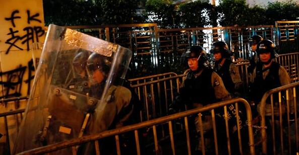 防暴警察於中聯辦外果斷採取清場行動。 路透社
