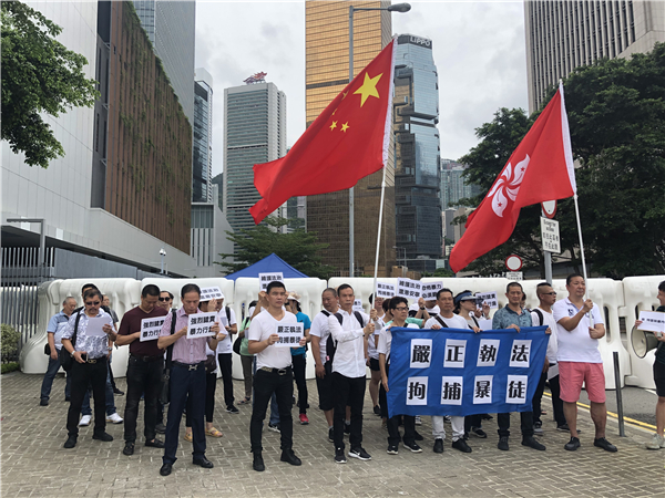 他們又指反對派昨晚又借游行示威之際,煽動部分激進示威者圍堵中聯辦大樓并污損國徽,噴塗侮辱國家,民族的字句。該行徑已經完全超出和平示威的範疇。團體對此表示最强烈的譴責,同時强烈要求特區政府及警察部門嚴正執法,拘捕暴徒,維護香港的社會穩定。