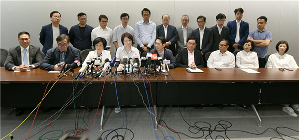 建制派議員聯合發表聲明稱,一批激進暴力分子在昨日遊行結束後,不但再次惡意包圍警察總恩部,令警隊無法正常運作及執勤,又向中聯辦集結,聯群結隊圍堵衝擊中聯辦,飛擲黑色顏料塗污國徽,投擲雞蛋和雜物,又肆意破壞設施,聲明又批評他們叫囂要成立臨時立法會,進行革命,光復等港獨行為,嚴重違反國家憲法,海辱國家和冒犯全國人民背離《基本法》和「一國兩制」,破壞香港社會秩序及損害市民利益。並強烈譴責及聲討他們的非法行為,並支持警方馬上制止有關極端違法行為,並果斷嚴肅追究違法者的刑事責任。