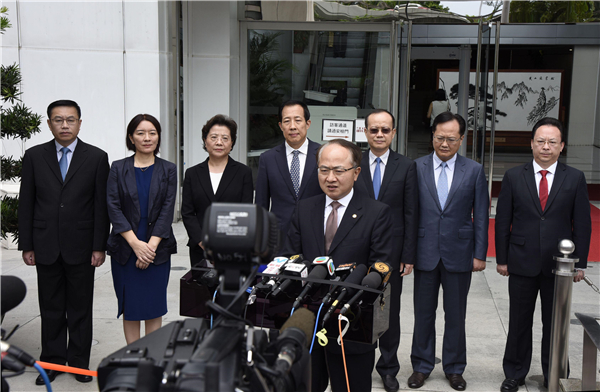 中聯辦主任王志民和各位副主任集體會見記者。中聯辦網站