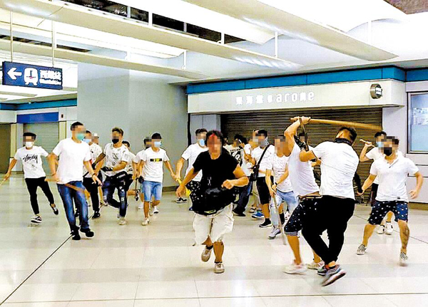 周日多名白衣人持武器追打元朗站內乘客,全城震驚。(網上圖片)
