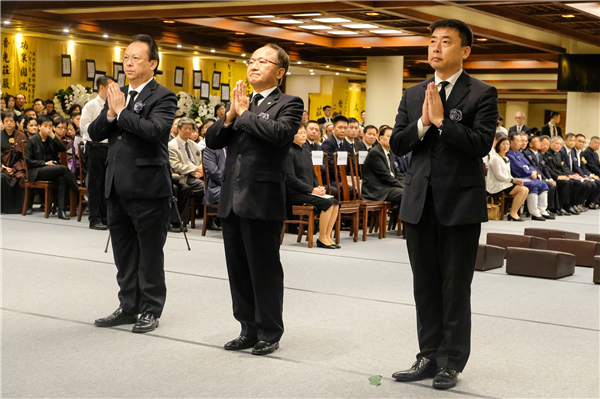 中聯辦主任王志民(中)、副主任譚鐵牛(左)、協調部部長朱文(右)合十致祭。