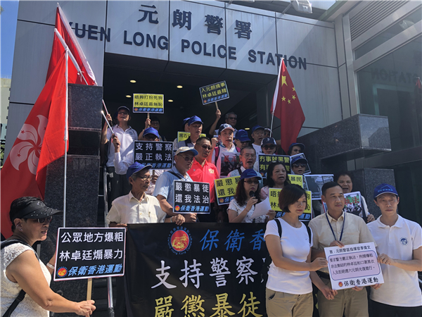【香港商報網訊】「保衛香港運動」約30人來到元朗警署支持警方執法,感謝警察連日來不辭勞苦,克盡己職去維持元朗社區的秩序,除暴安良。