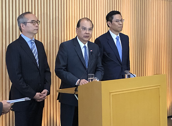 政務司司長張建宗就周六元朗遊行見記者。記者馮煒強 攝