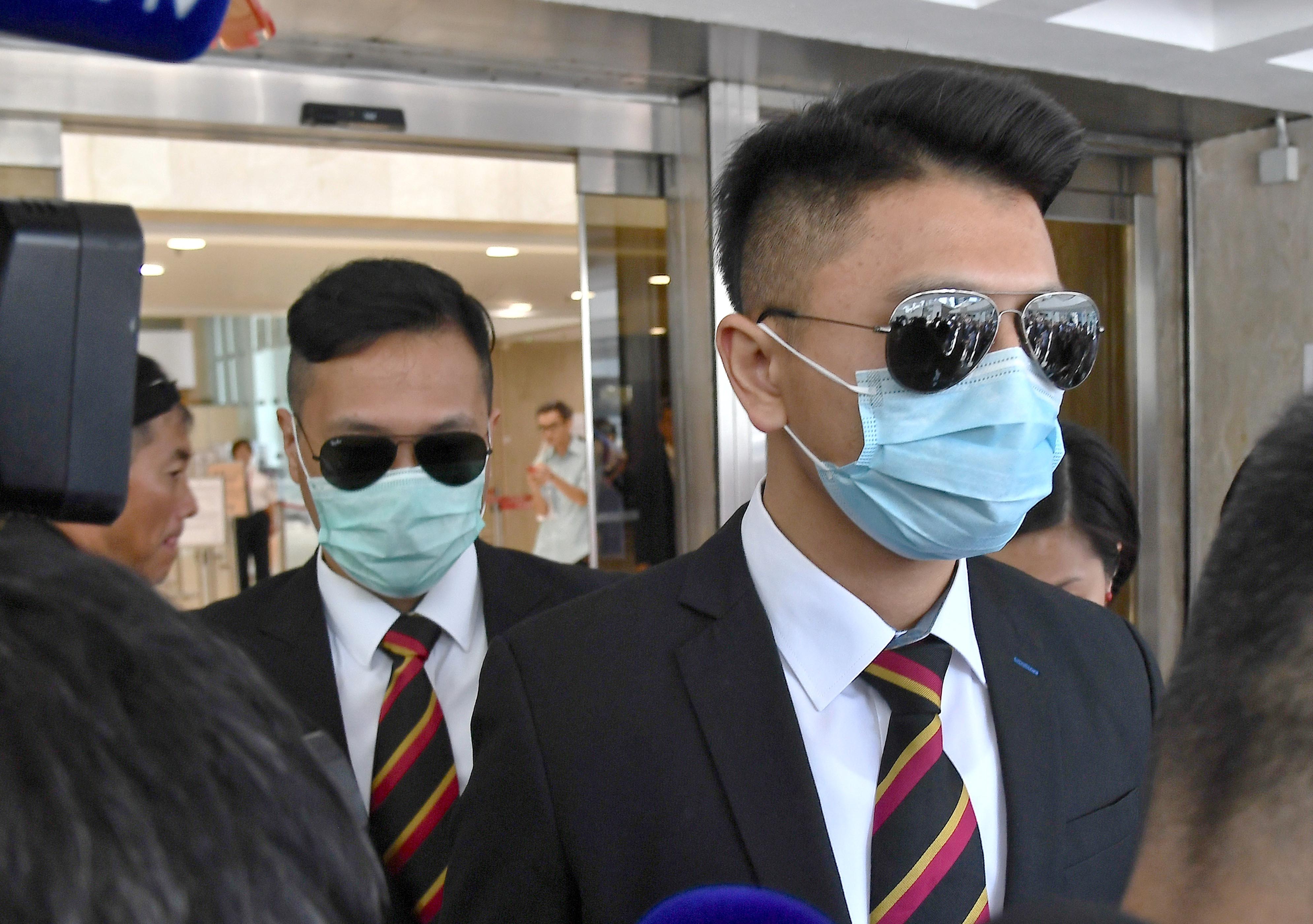 警員劉興沛(左)和黃偉豪(右)上訴得直無罪獲釋,圖為2人步出法庭。 中通社