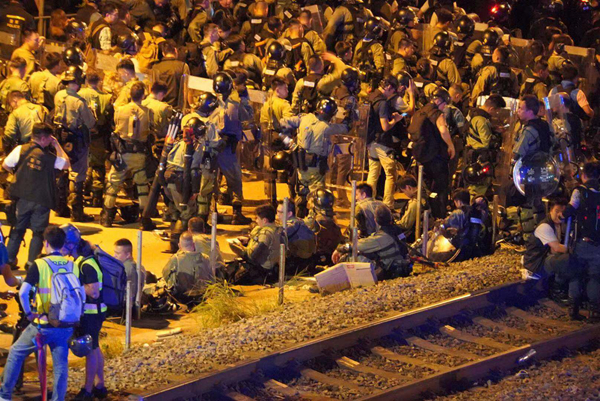 截至晚上11时许,警察已经守住西铁站的各个出口,交通基本上恢复,并清理出两条行车线。