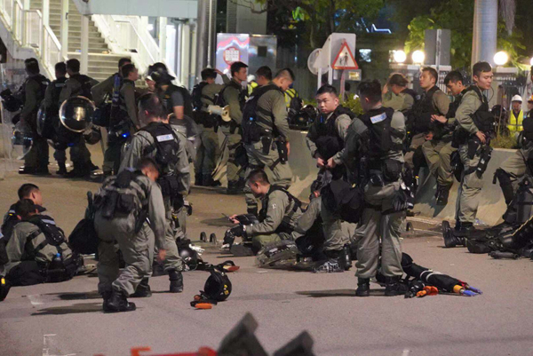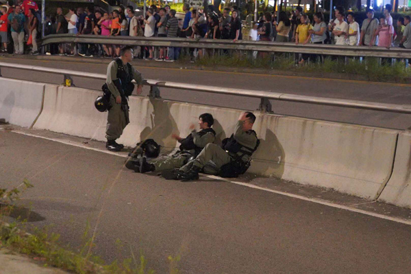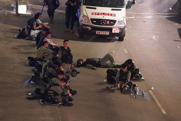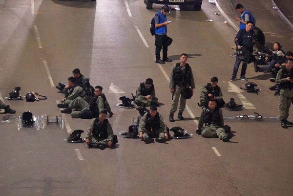 清場大致完成,部分警員抓緊時間休整。