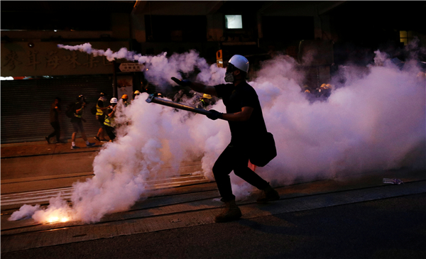 【香港商報网訊】記者馮仁樂報道:昨日,有示威者發起在中環遮打花園集會,惟開始不久就有大批集會者湧出公園、衝出馬路,其後兵分多路向金鐘、灣仔、西環等多個方向前進,並沿途設下路障。其中,往西區的示威者早有準備,沿途在德輔道西中聯辦附近及干諾道西一帶設置路障堵路,令多條東西行幹道陷於癱瘓。警方多次呼籲堵路者散去不果,晚上7時前在區內多處地方展開清場行動。期間,不斷向堵路示威者防線發放大量催淚彈;精銳速龍小隊亦出動,在多處拘捕至少十多名暴徒。至晚上9時,警方將一干暴徒驅趕至干諾道中西港城及信德中心一帶,有全副裝備的示威者更點燃一輛手推車上的紙皮等雜物,並將手推車推向警方防線。警方形容,示威者使用暴力正在升級,對其一切暴力行為予以嚴厲譴責。