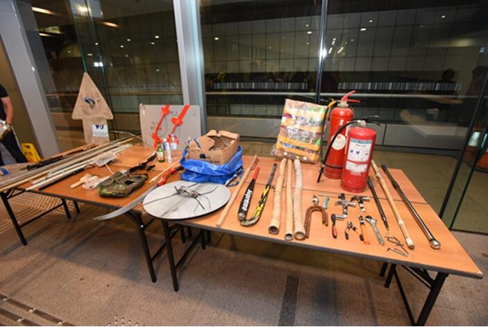 警方亦在現場檢獲射擊用的弓箭,屬致命武器。就昨日的事件,警方暫時拘捕至少49人,涉嫌干犯未經批准的集結、藏有攻擊性武器等罪行。發言人強調,激進示威者的行為越演越烈,由最初拆鐵欄、擲鐵枝和磚頭,及至到處縱火和大肆破壞,該等行為已經嚴重偏離和平表達訴求的原則,警方予以強烈譴責。警隊有決心、有能力,將違法人士繩之於法。